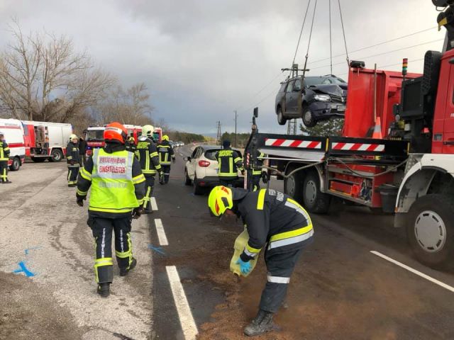 Nach der polizeilichen Unfallaufnahme wurden gemeinsam mit der FF Ebenfurth die Fahrzeuge auf das WLF Ebenfurth bzw. auf unsere Abschleppachse verladen und auf einen sicheren Platz verbracht. Die ausgeflossenen Betriebsmittel wurden mit Ölbindemittel gebunden und anschließend die Fahrbahn mit einem Ölwehrmittel behandelt. Während der Rettungs- und Bergearbeiten musste die Landesstraße 159 für den gesamten Verkehr gesperrt werden. Nach knapp einer Stunde konnten alle Kräfte ins Feuerwehrhaus einrücken und die Mannen die Vorbereitungen für das Weihnachtsfest fortsetzten.
