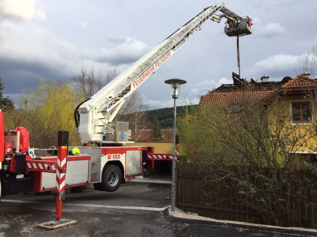 Feuerwehr Felixdorf mit Teleskopmastbühne und 2 Mann