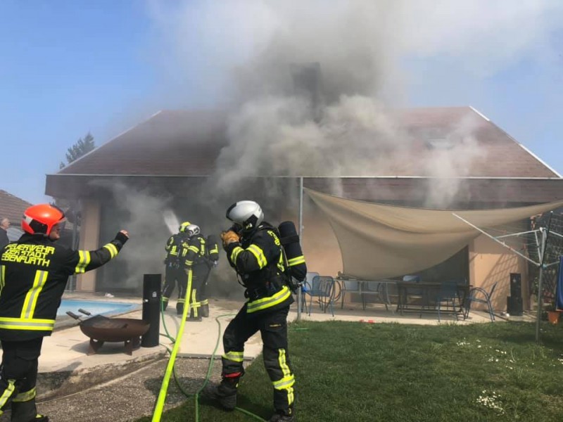 Mit einem Atemschutz-Trupp über die Rückseite und einem Trupp über den Haupteingang konnte dann glücklicherweise eine Brandausbreitung auf das gesamte Gebäude verhindert werden.