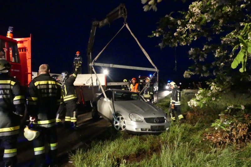 Gegen 21 Uhr wurden in der Nacht vom 27.05.2019 die Feuerwehren Lichtenwörth und Eggendorf zu einem Verkehrsunfall mit eingeklemmter Person zwischen Lichtenwörth und Pöttsching alarmiert. Beim Eintreffen der ersten Kräfte konnte rasch Entwarnung gegeben werden. Eine Lenkerin kam mit ihrem Fahrzeug aus unbekannter Ursache von der Fahrbahn ab und prallte gegen einen Baum. Die Frau wurde glücklicherweise nicht im Fahrzeug eingeklemmt. Sie wurde nach der Erstversorgung vom Rettungsdienst mit Verletzungen unbestimmten Grades ins Landesklinikum Wiener Neustadt gebracht. Für die Bergung des Unfallfahrzeuges wurde vom Einsatzleiter der FF Lichtenwörth das Kranfahrzeug der FF Neudörfl nachgefordert. Dieses barg in Folge den Unfallwagen und verbrachte ihn von der Einsatzstelle.