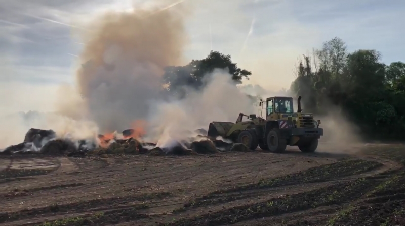 In dem Haufen befanden sich allerdings noch etliche Glutnester, Temperaturen über 30°C und starker Wind entzündeten diesen dann abermals. Gemeinsam mit einem Radlader der Firma Brünner wurde das Brandgut verteilt und anschließend mit einem Traktor eingeackert.