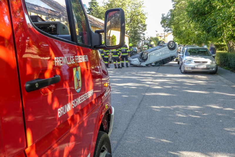 Am Mittwoch, 4. Septeber wurden die FF Brunn/Schneebergbahn und die FF Bad Fischau am Nachmittag zu einem Verkehrsunfall mit eingeklemmter Person in der Brunner Hauptstraße alarmiert. Ein Lenker verlor die Kontrolle über seinen Wagen und touchierte mehrere geparkte Fahrzeuge, ehe sich der Wagen überschlug und auf dem Dach zu liegen kam.In Zusammenarbeit mit dem Rettungsdienst konnten die Mtglieder der Feuerwehren die Insassen rasch aus dem Fahrzeug retten. Die Beteiligten wurden vom Roten Kreuz und Samariterbund versorgt. Nach der polizeilichen Freigabe wurde die Unfallstelle von den beiden Feuerwehren geräumt. Nach kurzer Zeit konnten wir die Straße wieder für den Verkehr freigeben.