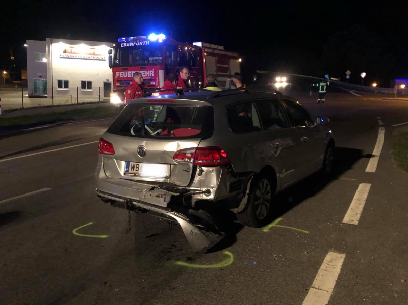 Am 20. September wurden die Mitglieder der FF Ebenfurth um 22:48 Uhr zu einem Verkehrsunfall auf die B60 Richtung Pottendorf alarmiert. Dort kam es am Beginn der 50er Beschränkung vor der Ortseinfahrt Ebenfurth zu einem Auffahrunfall zwischen zwei PKW. Eine Person wurde bei diesem Unfall leicht verletzt und in ein Spital eingeliefert. Für die polizeiliche Aufnahme wurde von der Feuerwehr die Unfallstelle ausgeleuchtet, anschließend mussten beide Unfallwagen geborgen und auf einem von der Polizei bestimmten Platz abgestellt werden. Nachdem ausgelaufene Betriebsmittel gebunden waren konnte die Totalsperre der Bundesstraße nach knapp einer Stunde wieder aufgehoben werden.