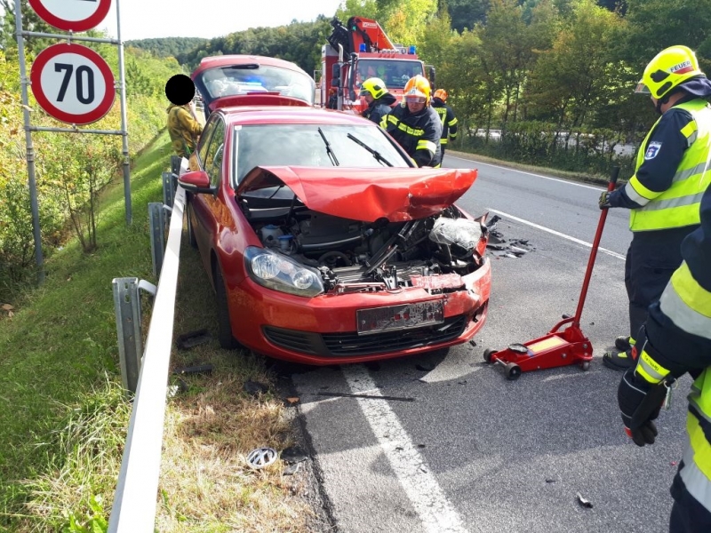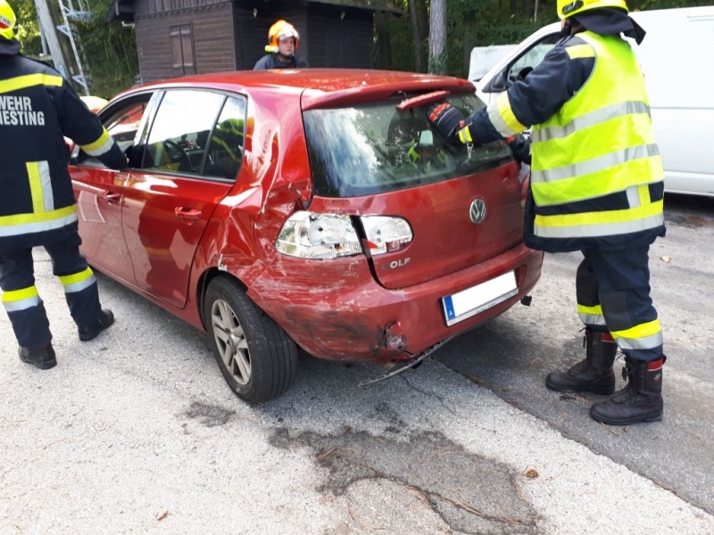 Am Dienstag, dem 08. Oktober 2019 wurde die Feuerwehr Markt Piesting um 13:05 Uhr zu einem Verkehrsunfall auf die LB21 „Höhe Straßenmeisterei/Salzsilo“ alarmiert. Die Lenkerin eines Seat wollte von der LB21 links zum Salzsilo der Straßenmeisterei abbiegen. Der nachkommende Lenker eines VW Golf hielt an, der zweite nachkommende Lenker konnte nicht mehr rechtzeitig bremsen, stieß links gegen das Heck des ersten nachkommenden Fahrzeuges und schob dieses dadurch in den abbiegenden Pkw.