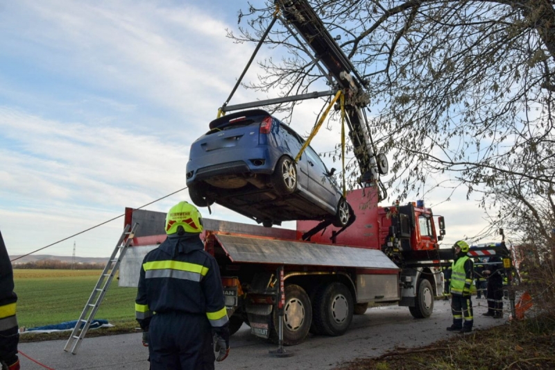 Im Einsatz standen die Feuerwehren Haschendorf, Siegersdorf und Pottendorf, sowie die Feuerwehr Ebenfurth, welche den Unfallwagen mit WLF-Kran geborgen und auf einen sicheren