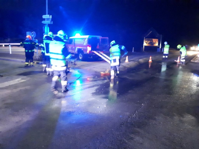 Der Citroën wurde dabei im rechten Frontbereich, der Mercedes stark im Motorbereich beschädigt. Nach dem Absichern der Unfallstelle und der Freigabe durch die Exekutive wurden die beiden Unfallfahrzeuge geborgen und anschließend gesichert abgestellt. Während der Aufräum- und Bergearbeiten wurde der Verkehr wechselweise angehalten bzw. über die Ortschaft umgeleitet. Nach dem Entfernen der beiden Pkw galt es noch ausgelaufene Betriebsmittel zu binden.