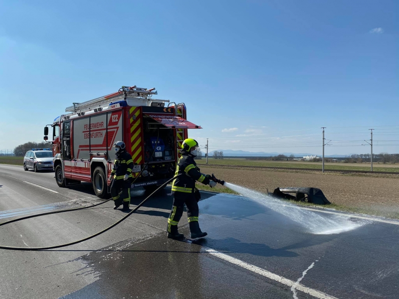 Am 1.April wurde die FF Ebenfurth am frühen Nachmittag zu einem Technischen Einsatz auf die B60 Richtung Eggendorf alarmiert. In einer Kurve kam ein PKW von der Fahrbahn ab und überschlug sich im Graben. Der Unfallwagen wurde auf einem Platz zum abschleppen bereitgestellt, auslaufende Betriebsmittel wurden gebunden und die verschmutze Fahrbahn gereinigt.