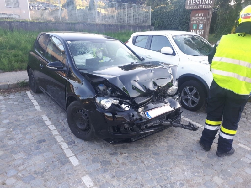 Am Dienstag, den 21. April 2020 wurde die Feuerwehr Markt Piesting um 18:39 Uhr zu einem Verkehrsunfall in die Wöllersdorfer Straße alarmiert. Der Lenker eines VW übersah den vor ihm abbiegenden BMW, dadurch kam es zu einem Auffahrunfall, bei welchem der VW im Frontbereich stark beschädigt wurde.