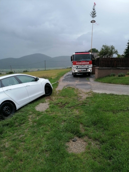 Am 31. Mai wurde die FF Maiersdorf zu einer Fahrzeugbergung alarmiert. Ein PKW war rückwärts von der Straße abgekommen und auf der Straßenböschung stehen geblieben.