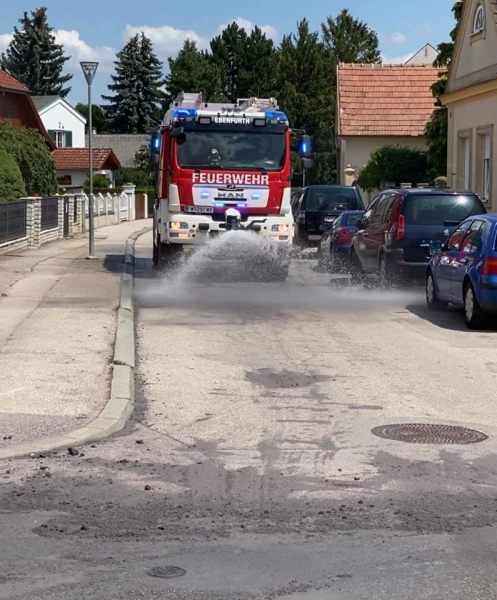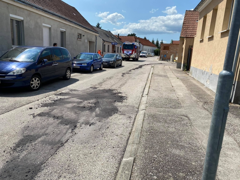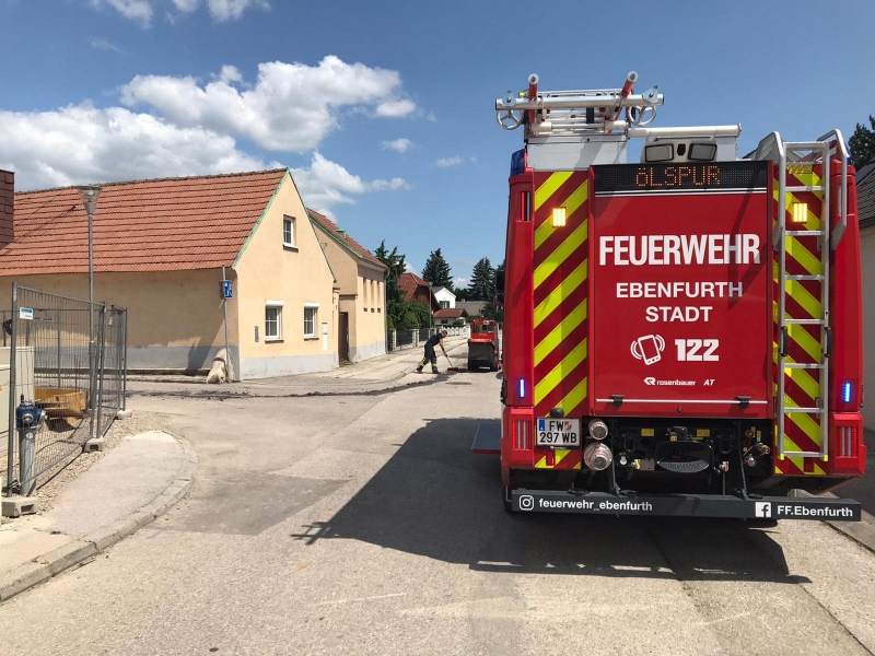 Beim abladen und bei der Fahrt zur Baustelle verlor die Maschine Hydrauliköl und verunreinigte Teile der Rathausstraße, Mühlgasse und Landegger Straße. Das ausgelaufenen Öl wurde gebunden und die Fahrbahn anschließend mit dem HLF 3 gereinigt. Nach 1½ Stunden konnte der Einsatz beendet werden.