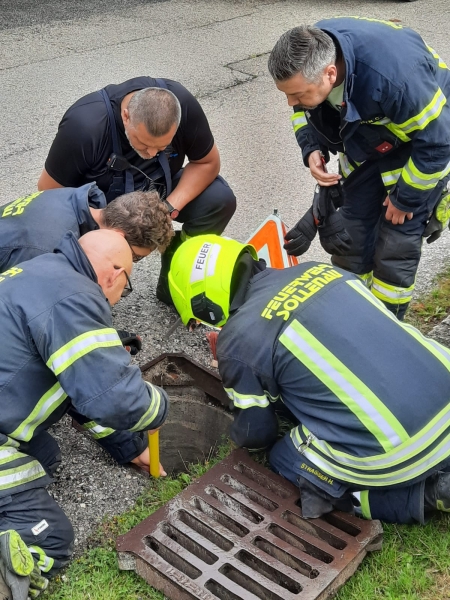 Nachdem das Kanalgitter entfernt war, konnte der Igel unversehrt befreit und wieder in die Freiheit entlassen werden.