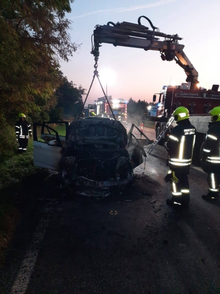 Unverzüglich begann ein Atemschutztrupp mit der Brandbekämpfung mittels HD-Rohr. Der Lenker des Autos konnte sich in Sicherheit bringen, für das Fahrzeug gab es aber keine Rettung mehr, es brannte trotz des raschen Eingreifens annähernd vollständig aus. Ein Übergreifen der Flammen auf den angrenzenden Grüngürtel und Bäume konnte verhindert werden.