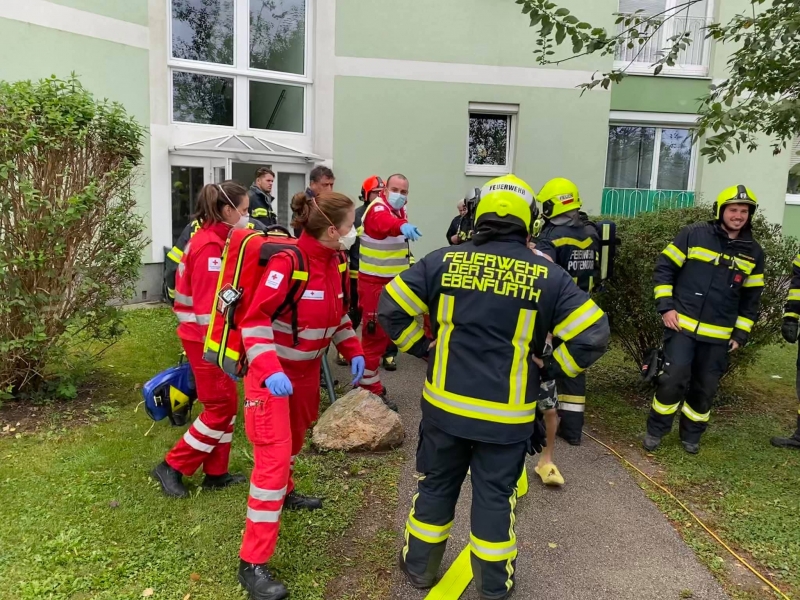 Beim Eintreffen von HLF3 Ebenfurth hielt ein Atemschutztrupp sofort Nachschau in der Wohnung. Der Eigentümer wurde in Sicherheit gebracht und dem bereits eingetroffenen Einsatzkräften des Roten Kreuzes übergeben. Das Brandgut, ein Müllsack, wurde dann im Freien endgültig abgelöscht. Nach erledigter Nachkontrolle mittels Wärmebildkamera und erfolgter Belüftung der Wohnung und des Stiegenhauses konnte der Einsatz nach einer Stunde beendet werden.