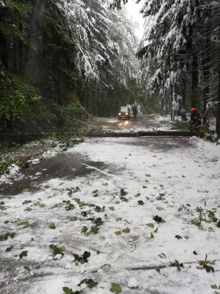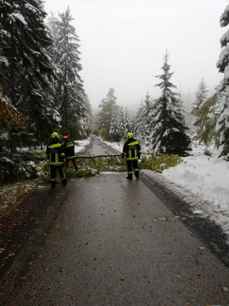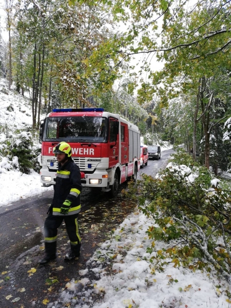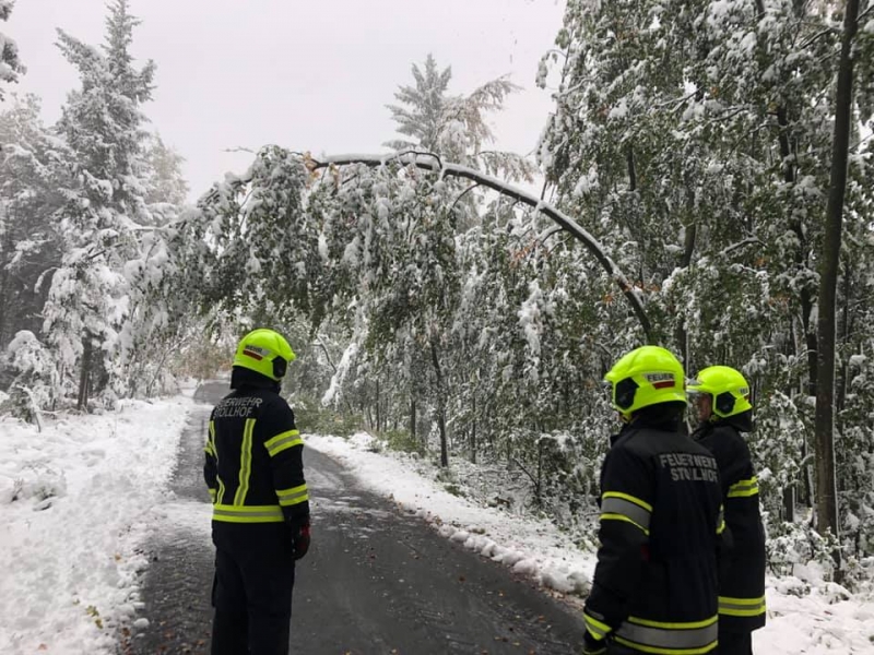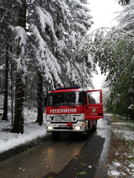 Aufgrund des nassen Schnees kam es am 12. Oktober auf der Hohen Wand Straße zu Baumbrüchen. Einige Bäum bogen sich unter der Last bedrohlich auf die Fahrbahn und drohten ebenfalls zu brechen. Die Freiwilligen Feuerwehren Maiersdorf und Stollhof entfernten diese Bäume, um eine sichere Zufahrt zu ermöglichen. Die Hohe Wand Straße wurde zur Sicherheit gesperrt.