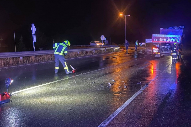 Nach erfolgter Fahrbahnreinigung konnte die B60 von der Polizei wieder für den Verkehr freigeben werden.