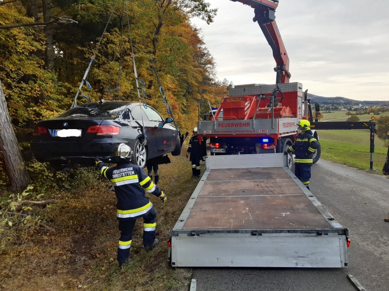 Am Nationalfeiertag wurde die Feuerwehr Dreistetten gegen 14:30 Uhr zu einem Verkehrsunfall auf die Fischauerstraße (Höhe Thalbrücke) alarmiert. Ein junger Lenker aus dem Bezirk verlor auf nasser Fahrbahn die Herrschaft über seinen BMW und krachte infolge in eine Baumgruppe. Der Lenker konnte sich selbstständig und unverletzt aus dem Unfallfrack befreien und den Notruf absetzen.