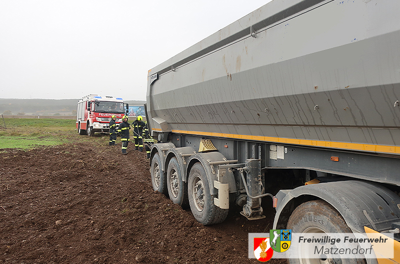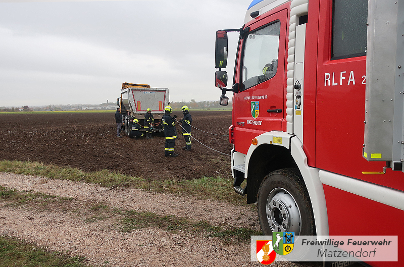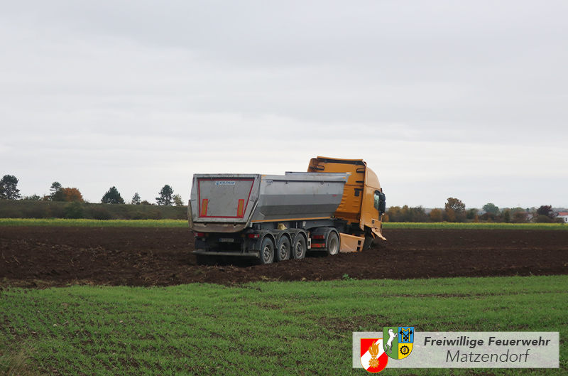 Der fahruntüchtige LKW wurde von der FF Matzendorf mittels Seilwinde aus dem Feld auf den angrenzenden Feldweg gezogen. Nach etwa eineinhalb Stunden konnten die Einsatzkräfte ins Feuerwehrhaus einrücken.