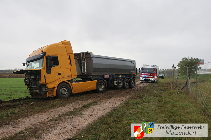 Am Dienstagvormittag des 27.10.2020 wurde die Freiwillige Feuerwehr Matzendorf zu einer LKW-Bergung auf einen, neben der Autobahn A2 gelegenen, Feldweg alarmiert. Aus noch ungeklärter Ursache kam ein LKW von der Autobahn ab, durchbrach den angrenzenden Zaun und kam anschließend in einem Feld zum Stehen.