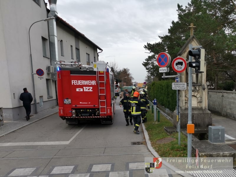 Im konkreten Fall erreichten ein vollbesetztes Tanklöschfahrzeug der Freiwilligen Feuerwehr Theresienfeld mit ausgerüstetem Atemschutztrupp, kurz danach ein weiteres Tanklöschfahrzeug aus Felixdorf und ein zweites aus Theresienfeld die Einsatzstelle. Auf der Ladefläche eines Pritschenwagens fingen mitgeführte Möbel aus unbekannter Ursache Feuer.