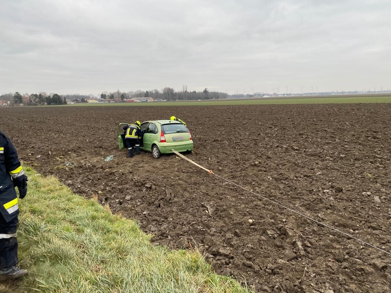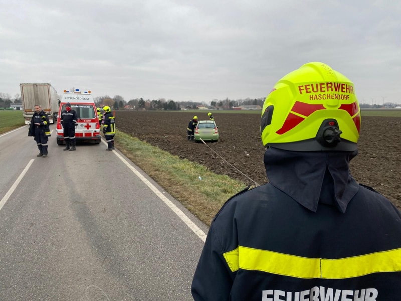 Nach der polizeilichen Aufnahme wurde das Fahrzeug mit der Seilwinde von Tank 1 Haschendorf aus dem Acker gezogen und für den Abtransport durch ein Privatunternehmen gesichert abgestellt.