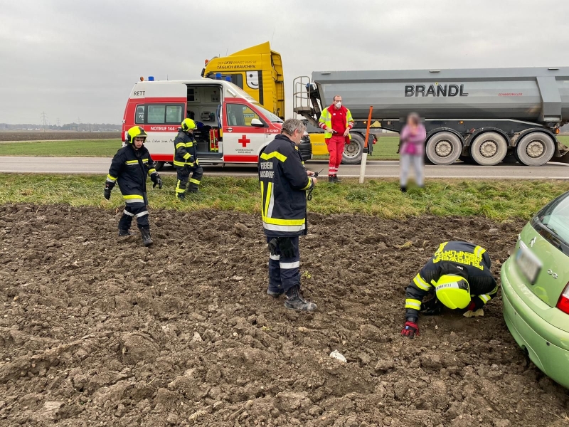 Eine Autofahrerin lenkte ihren Citroen von Haschendorf nach Ebenfurth. Beim Überholen eines LKW streifte sie diesen auf Höhe des Vorderreifen. Durch den Aufprall wurde ihr Fahrzeug nach links in den Acker geschleudert wo sich das Fahrzeug überschlug und auf den Rädern zum Stehen kam.