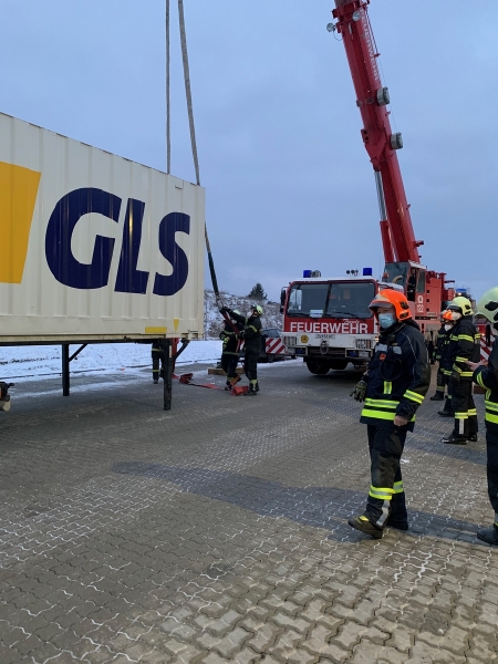 Am Freitag, 15.Jänner 2021 kurz nach 6 Uhr morgens wurden die Kameraden der Freiw. Feuerwehr Steinabrückl zu einer Lkw-Bergung eines umgestürzten WAP Anhängers samt Container bei einem ortsansässigen Paketdienst alarmiert.