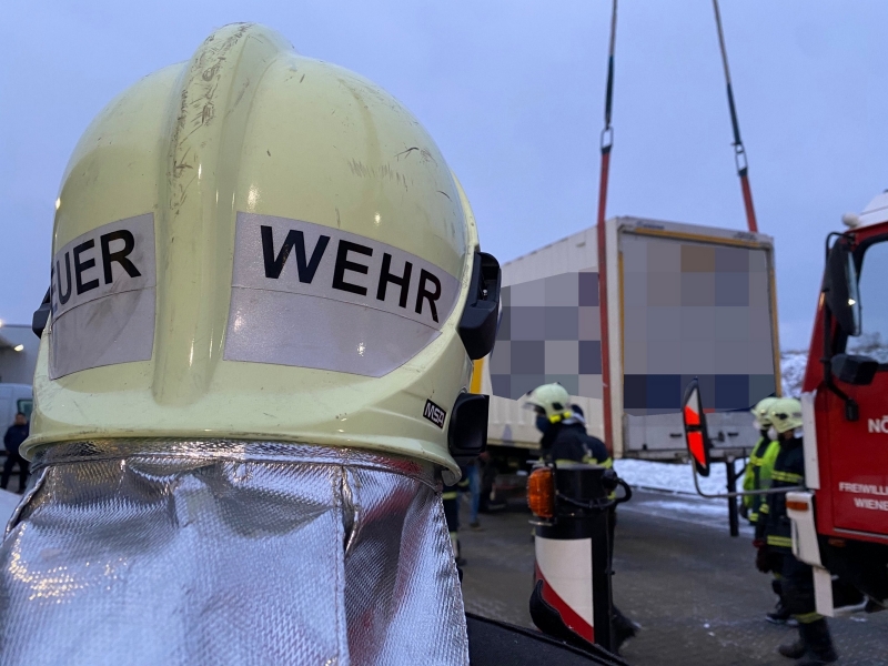 Auf Grund des Gewichtes samt Inhalt wurde vom Einsatzleiter der Freiw. Feuerwehr Steinabrückl entschieden, die Unfallstelle abzusichern und das Kranfahrzeug der Freiw. Feuerwehr Wiener Neustadt zur Unterstützung bei den Bergungsarbeiten anzufordern.