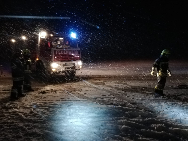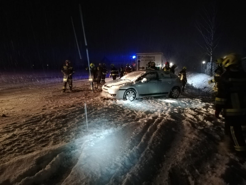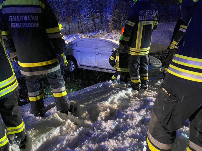 Am 16. Jänner wurde die FF Weikersdorf zu einer Fahrzeugbergung auf der Puchbergerstraße alarmiert. Ein PKW war wegen der winterlichen Verhältnisse von der Fahrbahn abgekommen und ins Bachbett gerutscht.