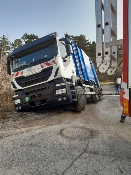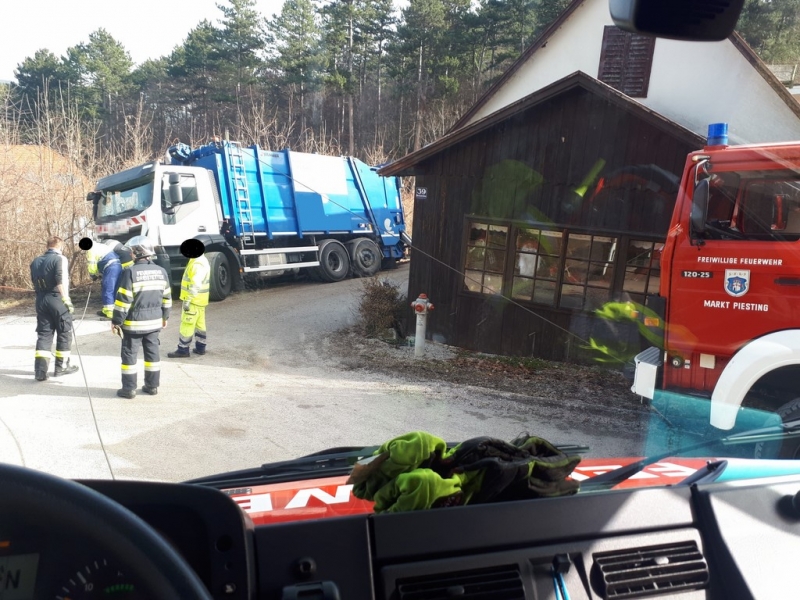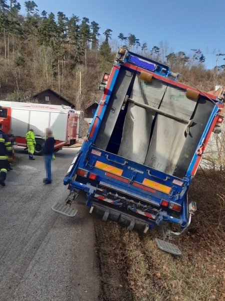 Am Donnerstag, den 25. Februar 2021 wurde die Feuerwehr Dreistetten um 09:30 Uhr zu einer Lkw-Bergung in die Siedlung Baumgarten alarmiert. Ein Müllfahrzeug kam beim Ausbiegen aus einer Seitenstraße mit dem Heck über die Böschung und rutschte diese in Folge dessen hinab, wobei der Lkw in einer extremen Schieflage stecken blieb.