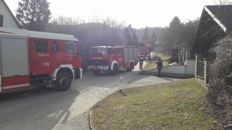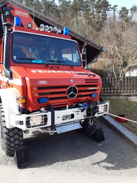 Feuerwehr Markt Piesting mit TLFA2000, VF-Kran und 2 Mann