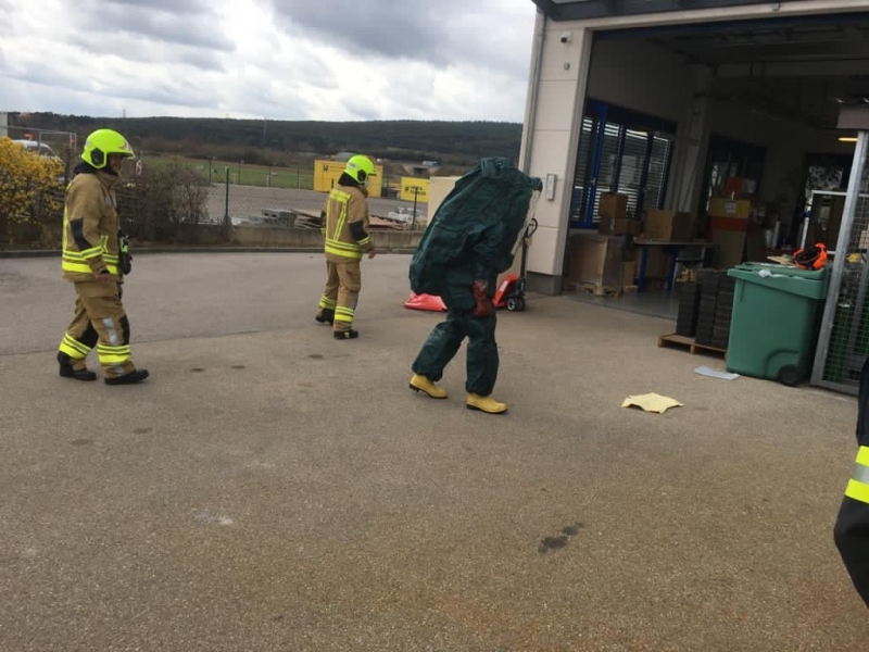 Wir mussten ein zweites Mal mit Atemschutz und Schutzausrüstung den Schadstoff binden.