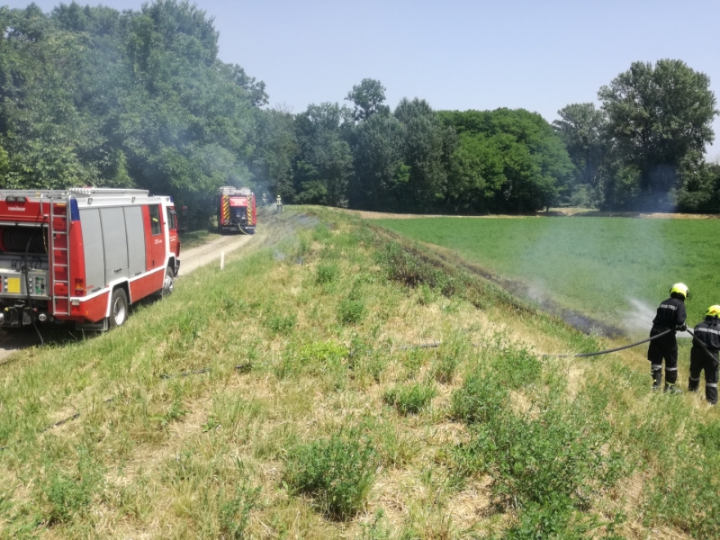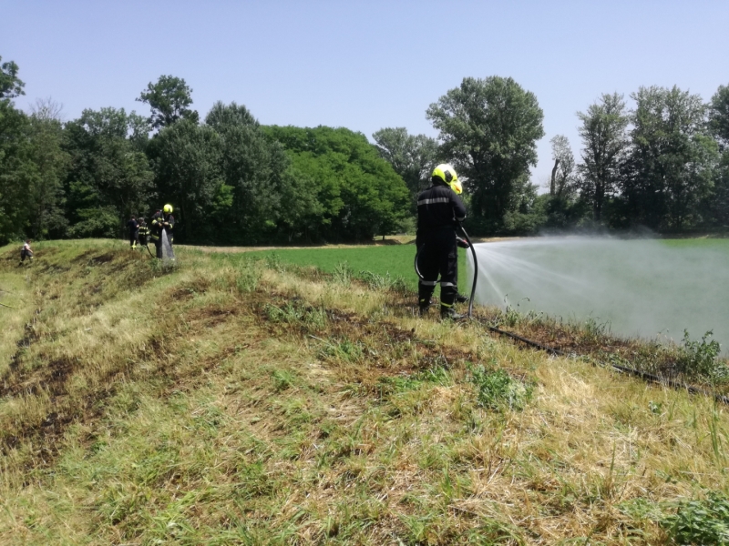 Am Hochwasserdamm beim Sportplatz entstand ein Flurbrand im Ausmaß von ca. 700 – 800m². Der Brand konnte mit den beiden Tanklöschfahrzeugen rasch eingedämmt und abgelöscht werden.