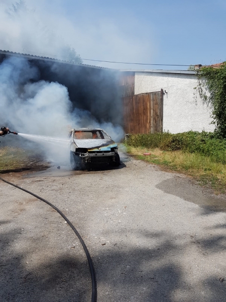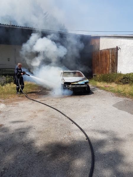 Beim Eintreffen von TLF 1000 Haschendorf stand das Fahrzeug in unmittelbarer Nähe zum Stallgebäude im Vollbrand. Durch die Wärmestrahlung verformten sich die Fenster des Gebäudes. Vom TLF 1000 und dem unmittelbar folgenden TLF 2000 wurde, unter schweren Atemschutz, je eine HD-Rohr in Angriff genommen und die Flammen rasch eingedämmt und in Folge gelöscht. Mit Akku-Spreizer vom HLF 3 Ebenfurth wurde die Motorhaube zum endgültigen ablöschen geöffnet. Messungen mit unserer Wärmebildkamera in den angrenzenden Räumen ergab keine Brandübertritt in das Gebäude. Die ebenfalls alarmierten Feuerwehren Siegersdorf und Sollenau konnten somit die Einsatzreserve bilden. Es haben ein paar Faktoren mitgespielt, das beide Feuerwehren „nur“ Einsatzreserve waren, jedoch nur wenigen Minuten oder gar Sekunden später und die Scheibe wäre geborsten, oder der Fahrzeugbesitzer hätte nicht geistesgegenwärtig das Fahrzeug aus der Garage geschoben, ……. Durch den raschen Einsatz konnte der Brand mit ca. 600L Löschwasser abgelöscht werden.