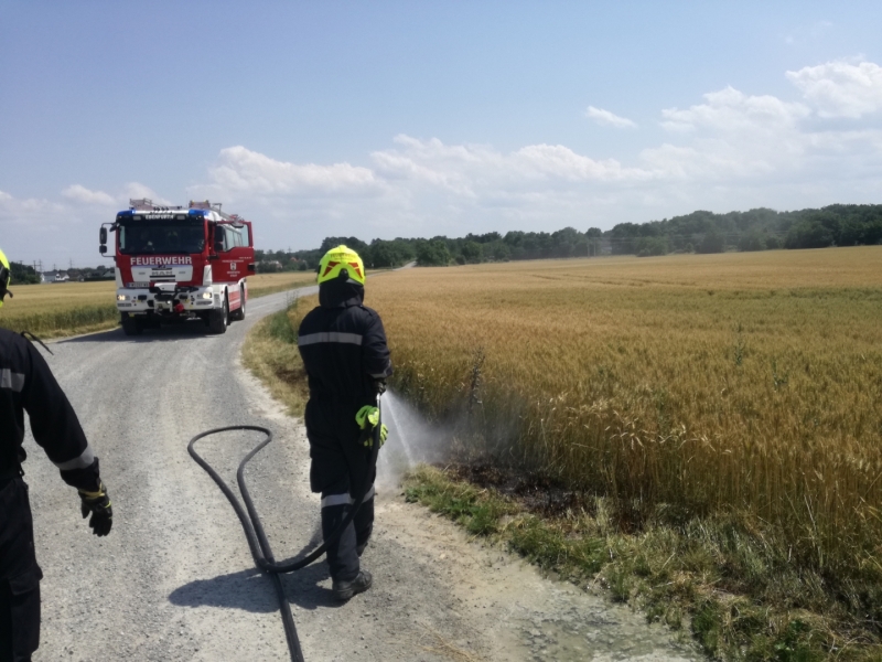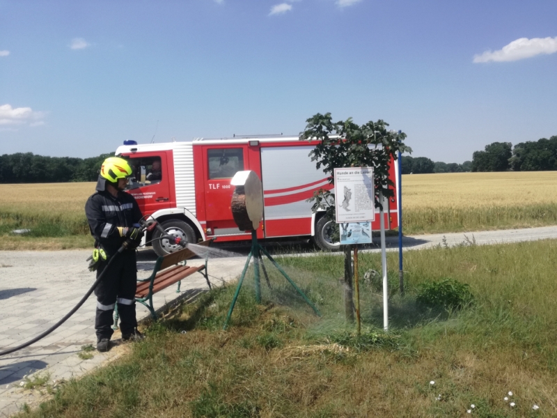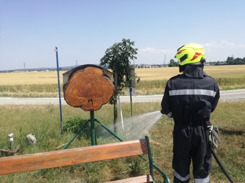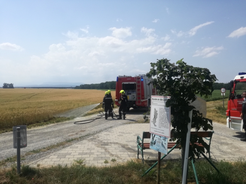 "B1 Flurbrand Acker beim Kastanienbaum" lautete am 29. Juni um 13:56 Uhr die Alarmierung für die Feuerwehren Haschendorf und Ebenfurth. Rund 10m2 Wiese, unmittelbar an einem noch nicht geernteten Getreidefeld hat sich entzündet.