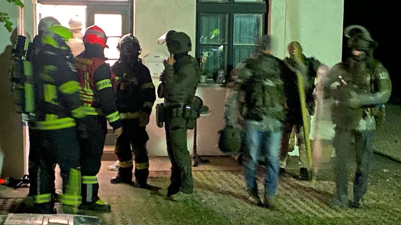 Nach langen Verhandlungen wurde das Gebäude nach vier Stunden vom Einsatzkommando Cobra gestürmt. Direkt hinter den Beamten sowie auf der Rückseite standen bereits zwei Atemschutztrupps samt Löschleitungen bereit um bei einem drohenden Brand sofort eingreifen zu können.