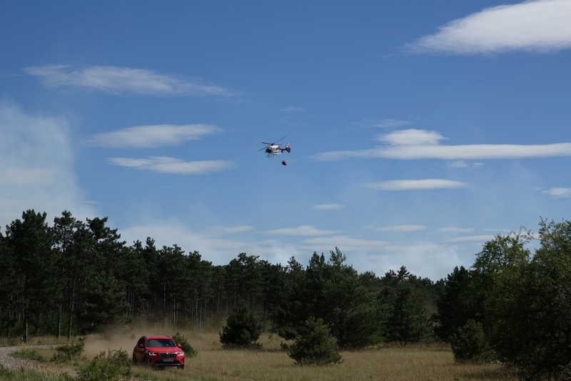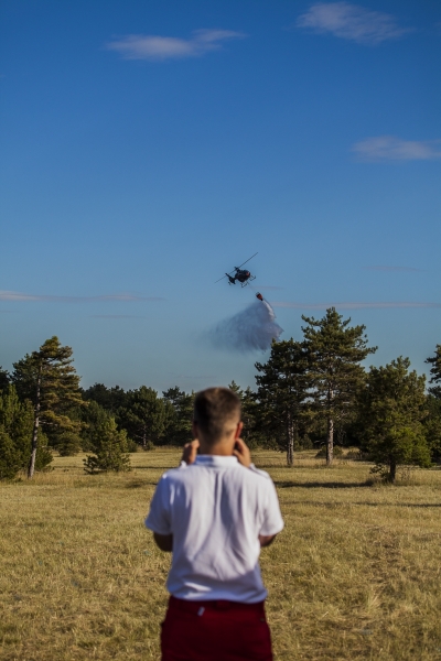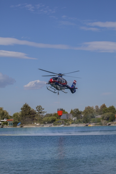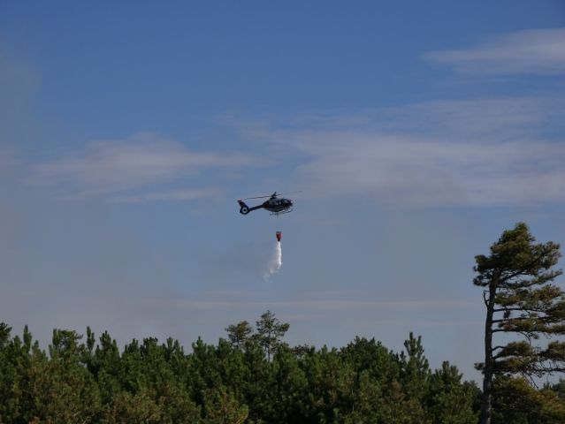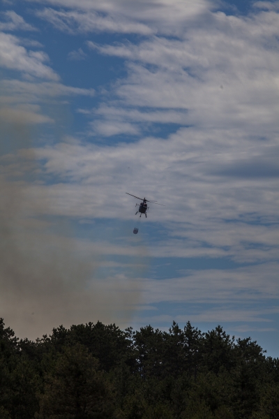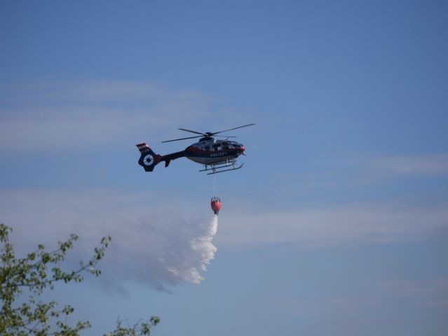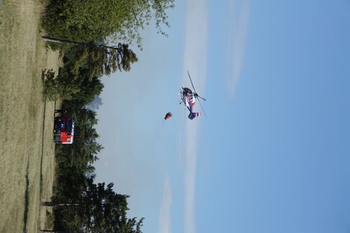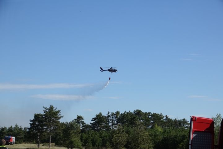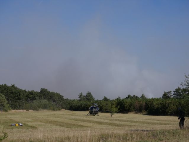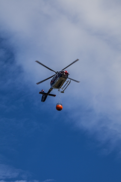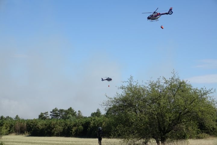 Dabei führten 5 Hubschrauber die Brandbekämpfung durch, ein Hubschrauber mit Wärmebildkamera erkundete die betroffene Fläche auf Brandherde.