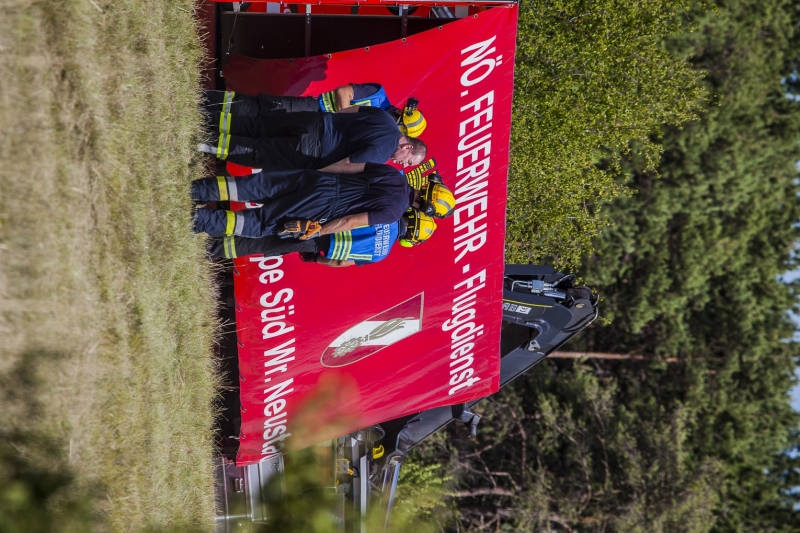 Nach einer weiteren Erhöhung der Brandstufe sind derzeit 22 Feuerwehren der Bezirke Wr. Neustadt und Baden, 2 KHD- Züge des Bezirkes aus dem Abschnitt Wr. Neustadt Süd und Kirchschlag, 2 KHD-Züge aus dem Bezirk Neunkirchen und einer aus dem Bezirk Baden mit 250 Mitgliedern, dier Flughafenfeuerwehr des VIE und das LFKDO mit der Mobilen Tankstelle im Einsatz. Insgesamt waren 750 Einsatzkräfte von Bundesheer, Feuerwehr, Polizei und Roten Kreuz vor Ort.