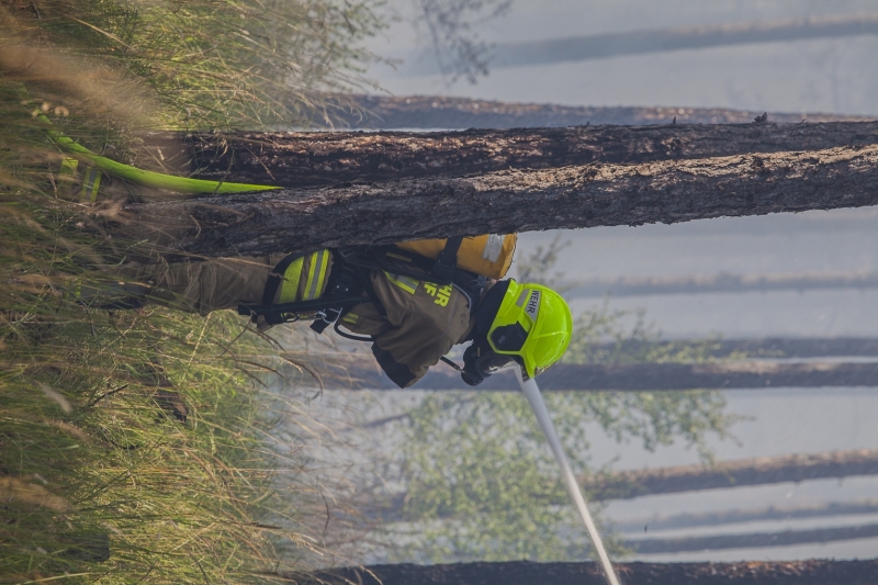 Die Löscharbeiten gestalteten sich auf dem militärischen Sperrgebiet schwierig, da nur auf den dafür freigegebenen Wegen die Brandbekämpfung von den Bodenkräften durchgeführt werden konnte, da sich nach wie vor im unbefestigten Gelände scharfe Munition befindet.