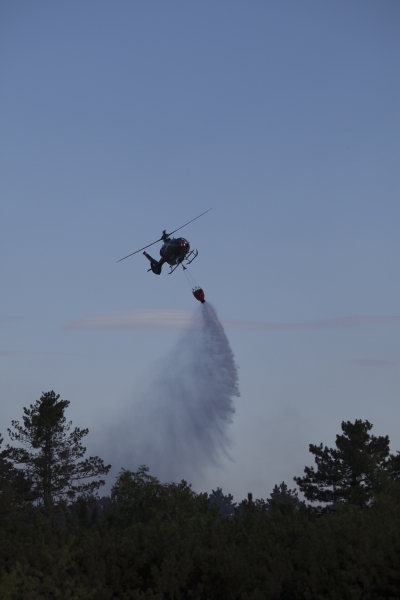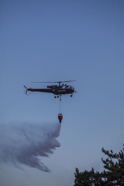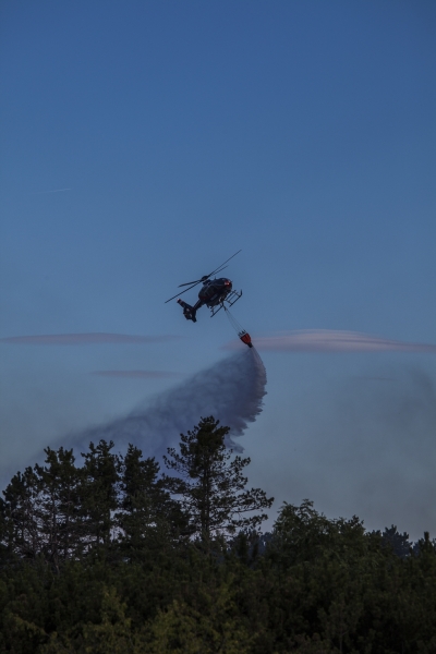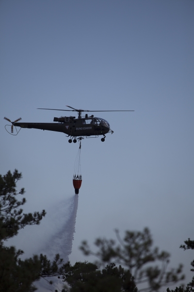 Die Löscharbeiten mit den Hubschraubern wurden noch bis zum Einbruch der Dunkelheit fortgesetzt