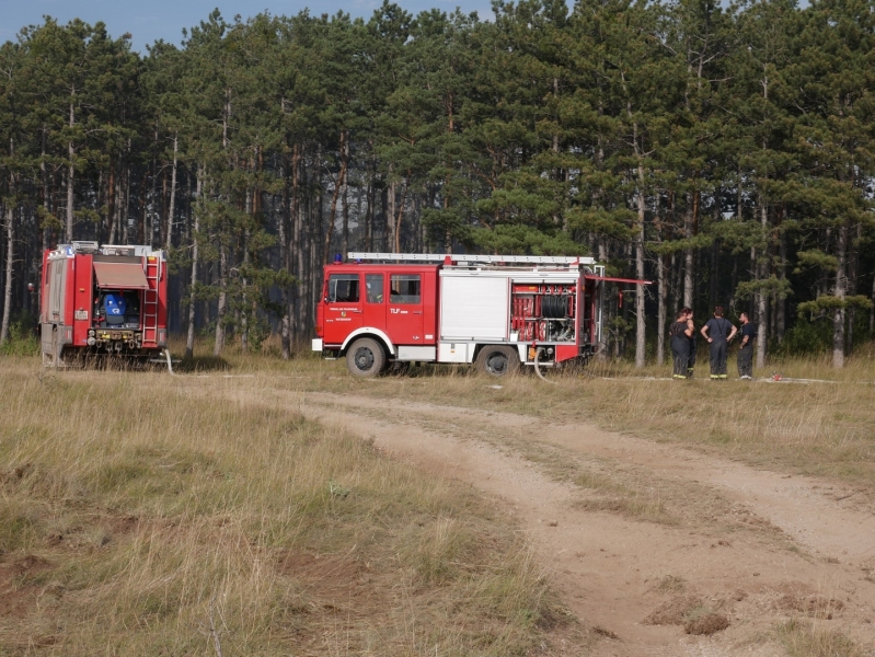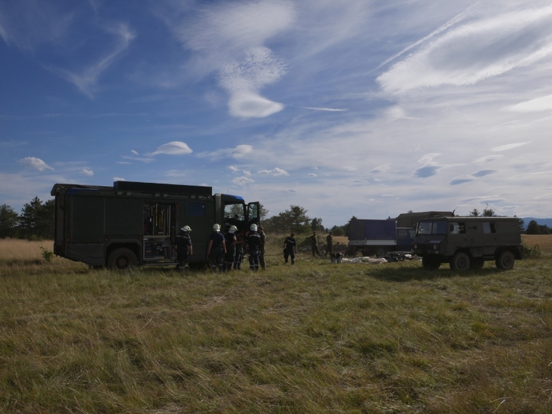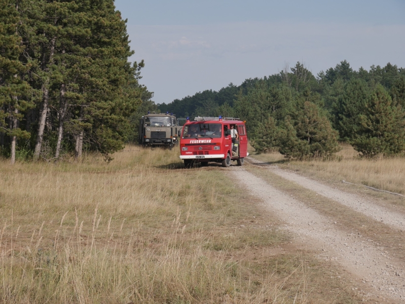 Die Löscharbeiten gestalteten sich wie am Vortag auf dem militärischen Sperrgebiet schwierig, da aufgrund von Vorhandensein von scharfer Munition in unbefestigten Geländen nur auf den dafür freigegebenen Wegen die Brandbekämpfung von den Bodenkräften durchgeführt werden konnte.