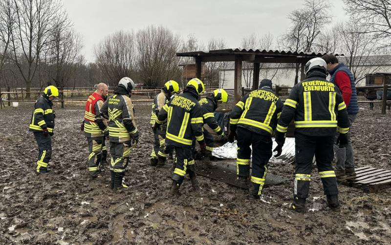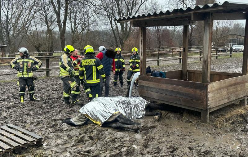 Nachdem das Tier wieder auf eigenen Beinen stand konnte die Feuerwehr den Einsatz nach 40 Minuten beenden.