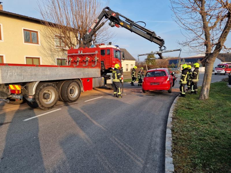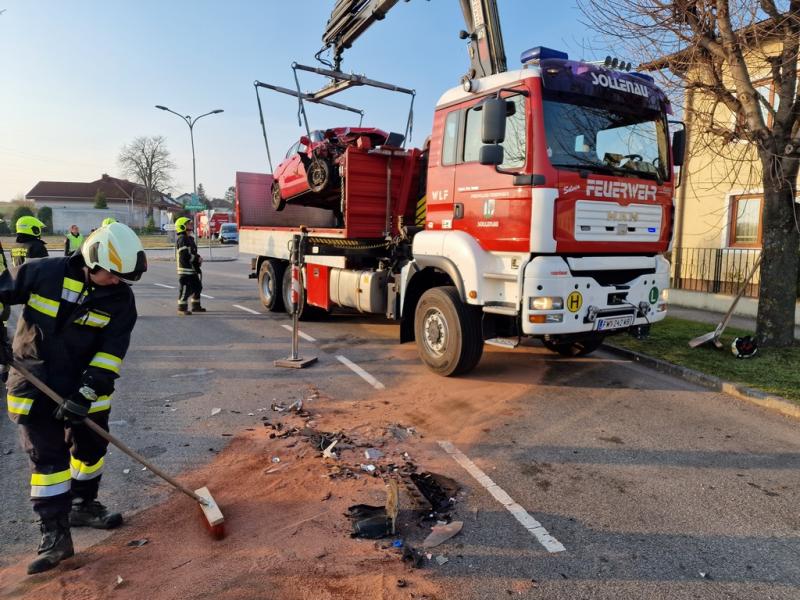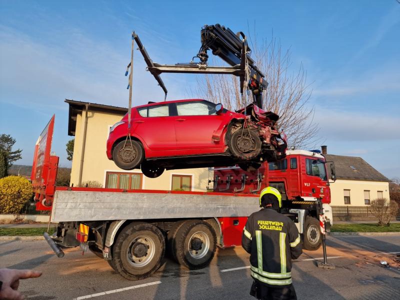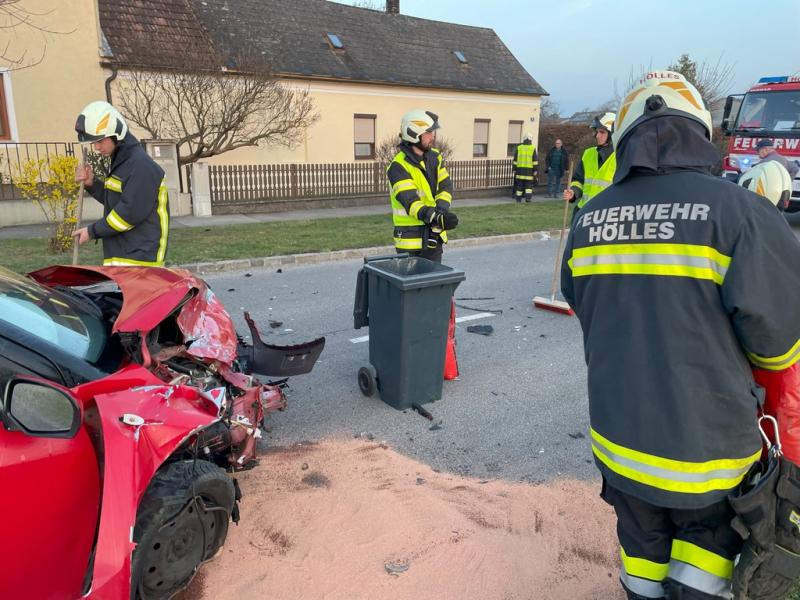 Beim Eintreffen am Unfallort fanden sie zwei Unfallfahrfahrzeuge und ausgelaufene Betriebsmittel vor. Nachdem die Einsatzstelle abgesichert wurde, begannen die Aufräumarbeiten. Die Flüssigkeiten wurden mittels Ölbindemittel beseitigt und eines der beiden Fahrzeuge wurde am Straßenrand abgestellt. Der zweite PKW war so schwer beschädigt, dass er von den Kameraden der FF Sollenau abtransportiert werden musste. Verletzt wurde niemand.
