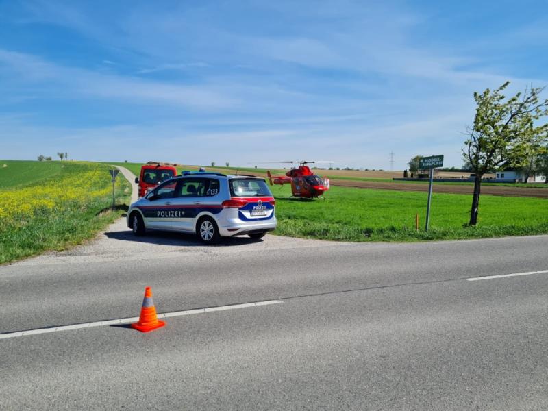 Bei Eintreffen an der Einsatzstelle fanden die Feuerwehrleute den Lenker eines Motorrads auf der Straße liegend vor. Dieser wurde bereits von Ersthelfern betreut. Die Kameraden übernahmen die Versorgung des Patienten, bis zum Eintreffen weiterer Rettungskräfte. Zeitgleich wurde der Verkehr umgeleitet, um ein sicheres Arbeiten am Einsatzort zu gewährleisten. In Zusammenarbeit mit der ACN (=Acute Community Nurse von Notruf Niederösterreich), einer RTW-Besatzung des Roten Kreuzes Sollenau-Felixdorf und dem Team des Notarzthubschraubers Martin 5 wurde der Unfalllenker erstversorgt und anschließend in ein Krankenhaus geflogen.