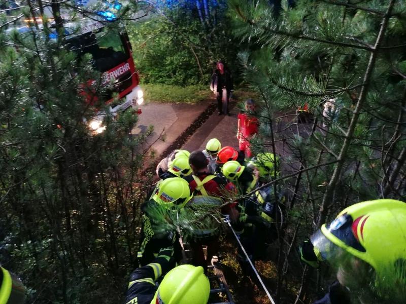 Die verunglückte Person wurde bei Eintreffen vor Ort bereits vom Team des Notarzthubschraubers versorgt. Um den Patienten so schonend wie möglich zu retten, wurde von der Straße unterhalb eine Schneise geschnitten, um eine reibungslosen Abtransport zu gewährleisten. Im Anschluss wurde das Rote Kreuz beim Abtransport zu Christophorus 3 unterstütz. Der Radfahrer erlitt Verletzungen unbestimmten Grades.