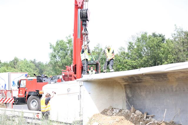 Am 22. Juni 2017 stürzte ein Lkw-Sattelzug aus uns unbekannter Ursache auf der A2 in Fahrtrichtung Wien bei km 49 um und blieb auf der Behelfsleitschiene zu liegen. In diesem Bereich ist eine Fahrspur als Gegenverkehrsbereich ausgeführt. Nicht auszudenken was passiert wäre, wenn der mit Bauschutt beladene Lkw auf ein im Gegenverkehrsbereich fahrendes Fahrzeug, vielleicht sogar ein Cabrio, gestürzt wäre. Gott sei Dank wurde niemand schwer verletzt. Der Fahrer wurde zur Kontrolle ins Krankenhaus gebracht. Die Feuerwehr Neunkirchen rückte an und die Feuerwehr Wiener Neustadt unterstützte mit dem Kran. Bevor mit den Bergungsarbeiten begonnen werden konnte, musste der Gegenverkehrsbereich geräumt werden.