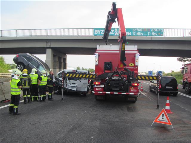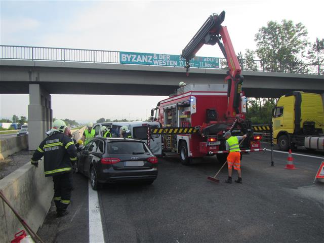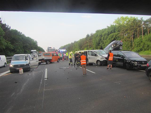 Gegen 06:15 des 28.5.2018 ging die Meldung zu dem Verkehrsunfall mit mehreren Fahrzeugen auf der A2