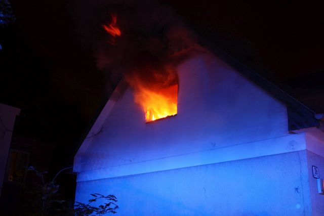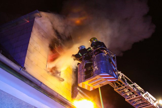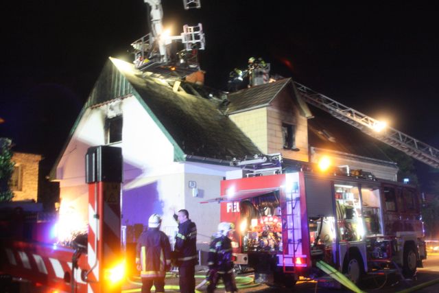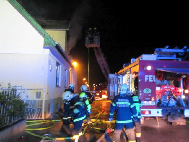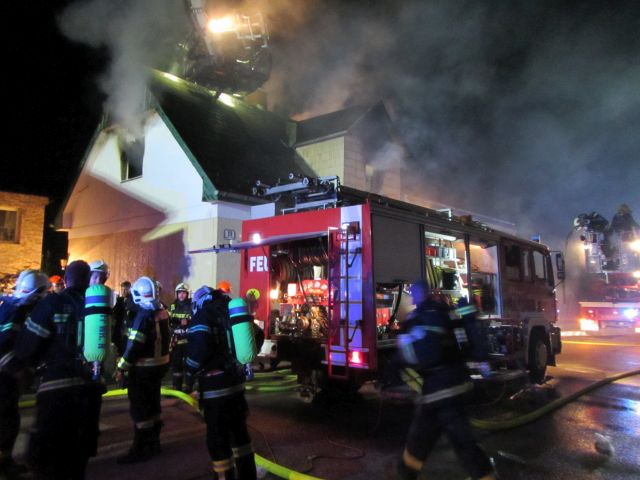 Als das erste Tanklöschfahrzeug am Einsatzort eintraf, schlugen bereits Flammen aus allen Fenstern des ausgebauten Dachgeschoßes. Die Bewohner versuchten zwar, den Brand mit einem Gartenschlauch einzudämmen, die Brandintensität konnte dadurch jedoch nicht gebrochen werden.