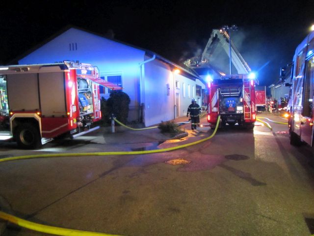 Der erste Stock brannte komplett aus. Auch der Dachstuhl wurde sehr stark beschädigt. Verletzt wurde niemand. Das Rote Kreuz stellte ein Fahrzeug als Bereitschaft vor Ort.