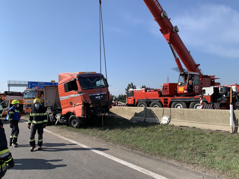 Die Person wurde bereits vom Roten Kreuz versorgt. Die Feuerwehr konzentrierte sich auf die Bergung der Fahrzeuge. Für die Bergung des Lkw musste das Kranfahrzeug der Freiwilligen Feuerwehr Mödling angefordert werden, da das eigene Kranfahrzeug derzeit serviciert wird.