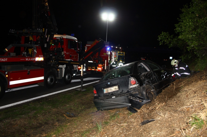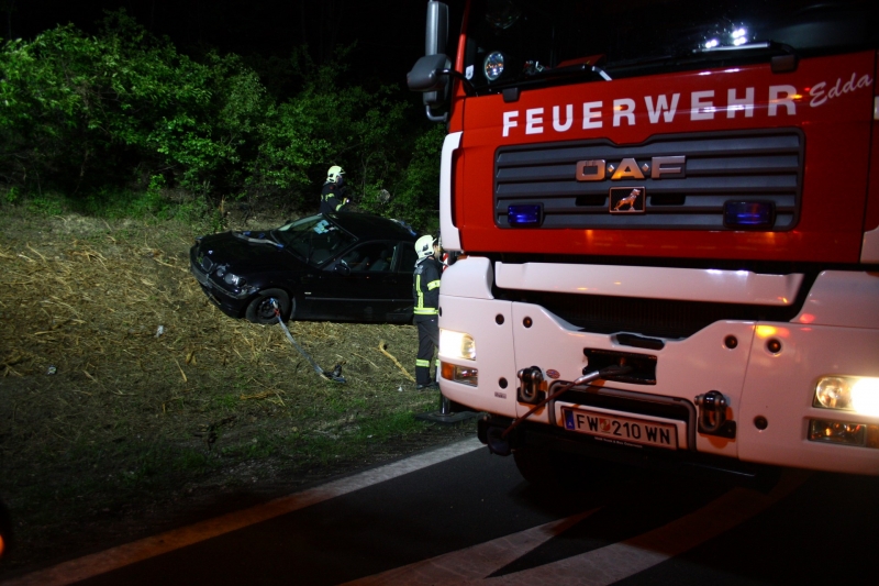In der Nacht auf Montag, 24.05., kam ein Wiener Neustädter Fahrzeuglenker kurz vor Mitternacht von der Fahrbahn der Südautobahn ab und landete in der Böschung neben der A2.